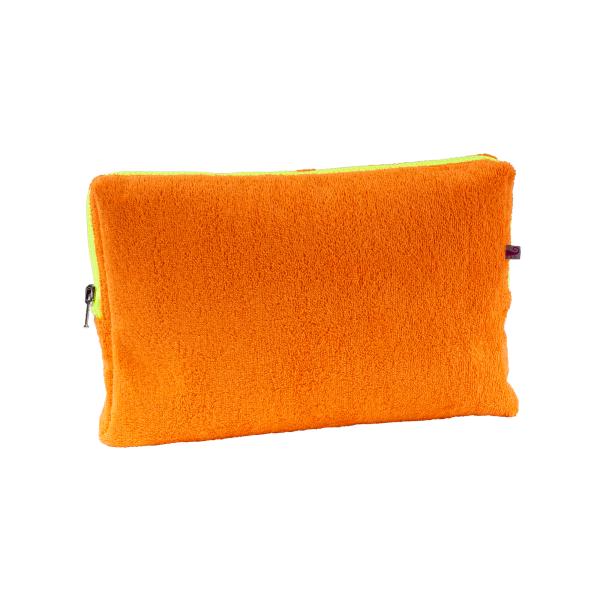 Der Name Big Love Bag ist nicht ohne Grund entstanden. Die Frotteebag in Form einer Tablett Tasche schleicht sich einfach in unsere Herzen.Natürlich ist der markante Neon Reißverschluß in XXL Format ihr Markenzeichen.Dazu kommt der sehr coole Frotteestoff mit extra großen Schlaufen.Hier passen diverse Tabletgrößen rein und dazu noch alles was sie sonst noch unbedingt täglich benötigen.Bedingt durch Ihren 5 cm Steg ist sie unglaublich komfortabel und leicht als Unterarmtasche zu tragen. Maße: 36x26x5 cm Material & Pflegehinweis: Wir lieben Frottee! Der Stoff besteht zu 100% aus Baumwolle. Dadurch ist er besonders hautfreundlich bietet einen hohen Tragekomfort. Ein weiterer Pluspunkt für dieses Material ist, dass es so wunderbar pflegeleicht ist. Unsere Frottee-Produkte können bei 30 Grad in der Maschine gewaschen werden und danach in den Trockner. Unsere Erfahrung zeigt, dass das Material selbst nach zahlreichen Wasch- und Trocknergängen noch genauso schön ist, wie am ersten Tag. Da unser Frottee vor der ersten Wäsche nicht schlingenfest ist, kann es passieren, dass sich im Kontakt mit Gegenständen (z.B. Schmuck) ein Faden zieht. In diesem Fall ziehen Sie den Faden bitte nicht weiter, sondern schneiden Sie ihn einfach ab. Mit der nächsten Wäsche wird der Faden sicher versiegelt. Wie alle Naturmaterialien ist auch Frottee nur bedingt lichtecht (Lichtechtheit: Stufe 4). Wenn Sie Kissen, Taschen oder Handtücher direktem Sonnenlicht (dies gilt auch für Fenster) aussetzen, tun Sie dies in dem Wissen, dass die Farben verblassen. Die Farbveränderung gibt den Produkten aber oft eine Vintage-Note, was äußerst charmant sein kann. Kleiner Tipp: wenn Sie die Kissen regelmäßig drehen, verändern sich die Farben gleichmäßig.